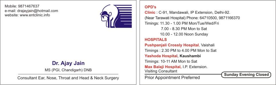 A blog about Ear, Nose and Throat diseases in simple language Dr Ajay Jain is a leading ENT Surgeon of east Delhi having ENT clinic at Preet Vihar. Download ,766 visiting card design eps free vectors Choose from over a million free vectors, clipart graphics, vector art images, design templates, and illustrations created by artists worldwide!. Find & Download Free Graphic Resources for Doctor Logo 1,000 Vectors, Stock Photos & PSD files Free for commercial use High Quality Images.