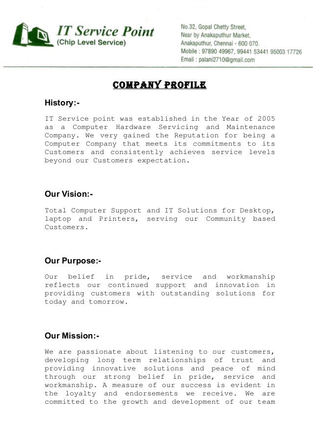 Computer company profile. With expert advice and fully qualified staff, the company is able to offer professional IT Services that include Hardware and Software, Sales, IT Consultancy and Engineering We can supply a range of Computer Hardware and Software from leading manufacturers at promising prices. The computer was obviously well designed and built The option to add an internal hard drive along with a 512g ssd wasn't available when I bought it, and it turned out to be extremely easy to add later Opening up the computer, I was impressed with how well it was designed and built The cables for the internal hd were neatly zip tied out of. A company profile, simply put, is used to inform the reader who you are and what your company does All the necessary information about your company can be found there, so it is a great way to introduce yourself Aside form the obvious, it has other usesYou may also see company memos 1 As a marketing tool.