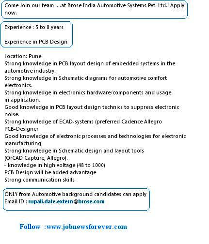 Job Opening For Pcb Design Engineer At Brose India Automotive Pvt Ltd Apply Here Job News Forever