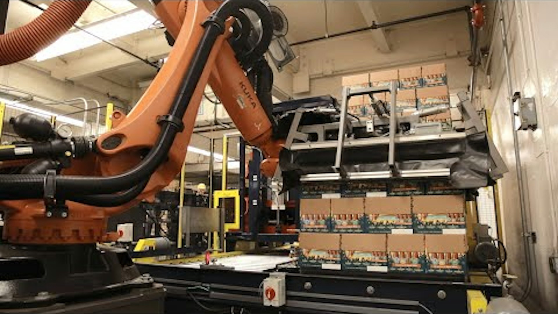 Handling Palettieren Fur Widmer Brothers Brewing Depalettiert Ein Kr Quantec Roboter Hoch Gestapelte Bierkisten