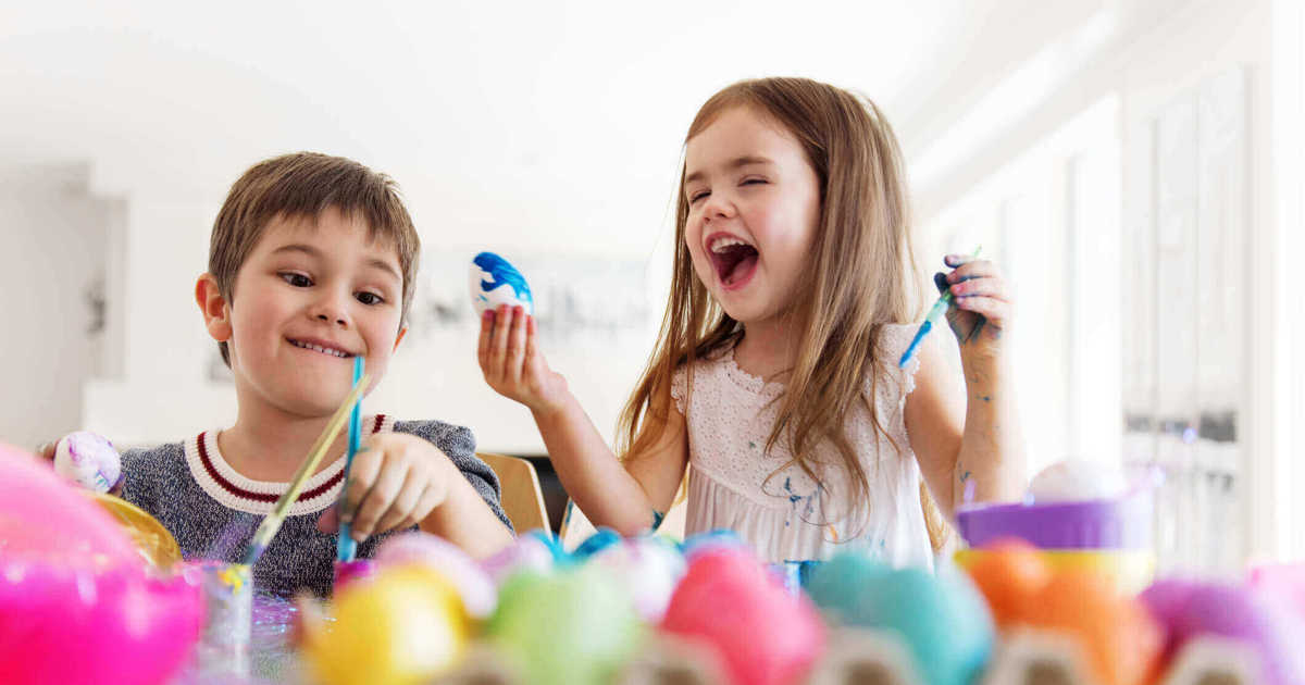 Ostern Mit Kindern Tun Lustige Aktivitaten Wie Malen Eier Und Gesichter Stockfotografie Alamy