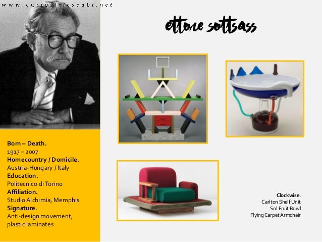 Jan 24, 16 Explore Ms Blake *'s board "RADICAL DESIGN/ANTI DESIGN DESIGN MOVEMENT" on See more ideas about design movements, design, ettore sottsass. A “movement” is a style or prevailing inclination in art or design that upholds a specific philosophy or ideal and is followed and promoted by a group of artists for a defined The following is an alphabetically ordered list of major art and design movements that took place during the th century. AntiDesign was a design flow and style art movement originating in Italy and lasting from the years 1966 1980 The movement emphasized striking colours, scale distortion (ie giant chairs that make you look small), and used irony and kitsh The function of the object was to subvert the way you thought about the object.