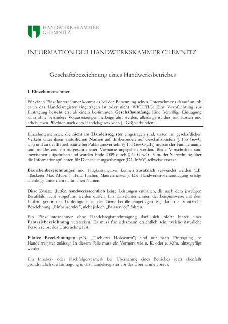 Unabhängig von diesen Kriterien kann sich gem § 2 HGB jeder Gewerbetrieb auf eigenen Wunsch in das Handelsregister eintragen lassen und erwirbt hierdurch die Kaufmannseigenschaft Die IHK unterstützt Sie gern bei der Einschätzung, ob eine Eintragungspflicht im Handelsregister besteht. Chemnitz Handelsregisterauszug, Jahreabschlüsse & Firmeninformationen keine Anmeldung notwendig schneller Service (Express Service möglich) keine Kosten falls kein. Steffen Ebner UstIdNr DE 278 961 164 Amtsgericht Chemnitz Finanzamt Chemnitz Telefon 49 3722 Erreichbarkeit MoFr, 0900 1800 Uhr EMail info@kappsonlinede.