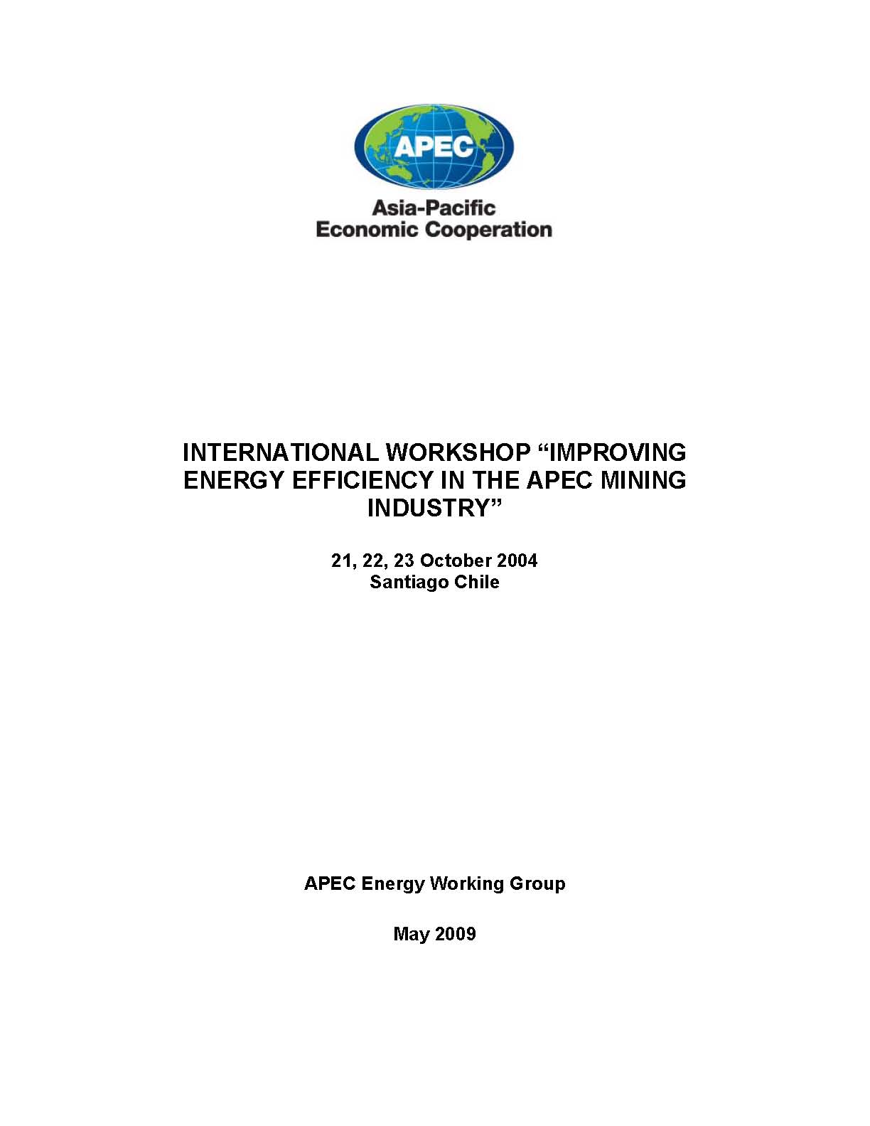 International Workshop Improving Energy Efficiency In The Apec Mining Industry