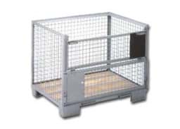 Európai DIN szabványak megfelelõ rácsos tároló konténer, más néven Gitterbox, GiBo Egy hosszabbik oldalalán a rács alsó fele fel, felsõ fele lehajtható Az alja merevített fémburkolat Pl csomagolatlan tömegáru, vagy hulladék tárolására, és szállí.