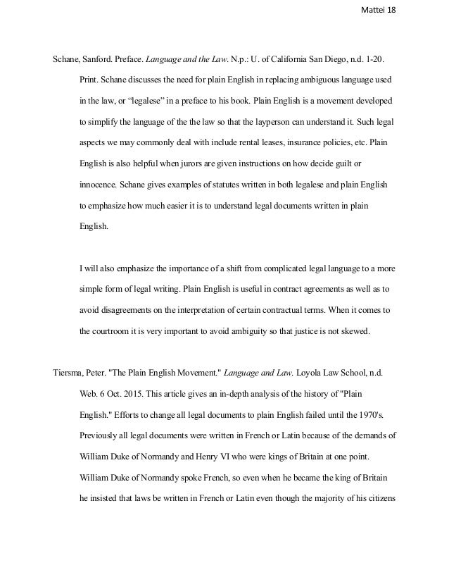 For attorneys the use of traditional legal writing is more efficient because it is most commonly used;. Thus modern English lawyers can understand American lawyers fairly well, and vice versa Yet in some important respects, the British and American legal systems have diverged, producing what are arguably differing dialects of legal English (Tiersma 1999 437) In contrast to the United States, countries such as Canada, Australia, and New. Legalese vs plain English, and why they're different What is not so clear is that legal documents intended to govern complex relationships and transactions need be or can be written with same.