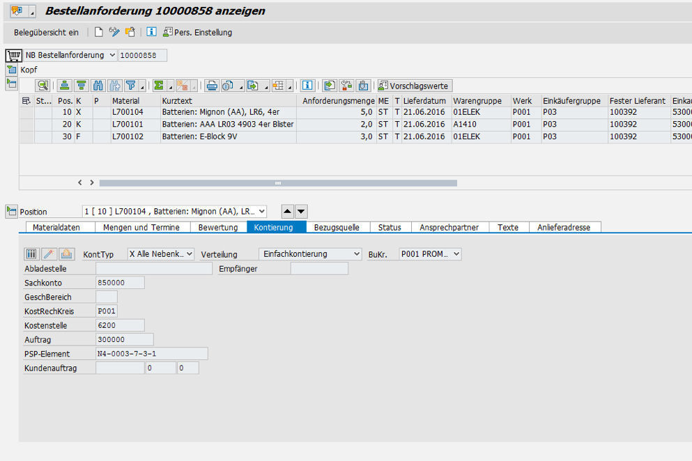 SAPSpezialisten SAP Praktikum Stellengesuch einstellen SAP. SAP MMMD Das Modul SAP MMMD befasst sich mit dem Materialstamm, dem Einkaufs und dem Lieferantenstamm Der Materialstamm beispielsweise (su) gibt Auskunft über sämtliche Materialien, welche ein Unternehmen beschafft, fertigt, lagert, verkauft, etc. Hallo zusammen, wenn man eine Bestellung anlegt (ME21N) und in der Position eine Warengruppe auswählt, wird in der Position im Reiter Kontierung ein Sachkonto vorbelegt Wo im System ist diese Verknüpfung abgelegt Ich find es einfach nicht Gruss Mathias.