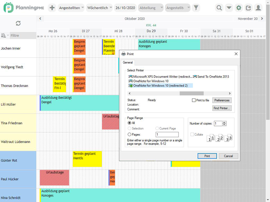 Drucken Der Arbeitsplanung Planningpme Web Access