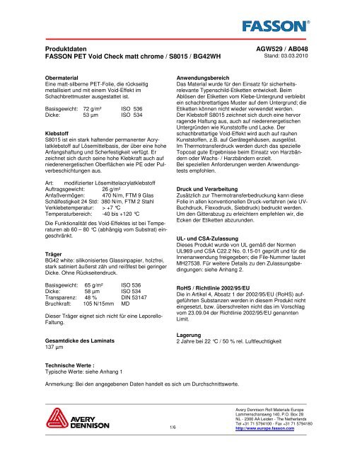 FLEXcon Europe Limited Flevolaan 3 13 JX Weesp PO Box 131 1380 AC WEESP The Netherlands Telephone 31 294. Meinten Sie Fasson PE DI, fasson', fasson*pp, fasson 60, fasson 60. In 1961 Avery became publicly owned;.