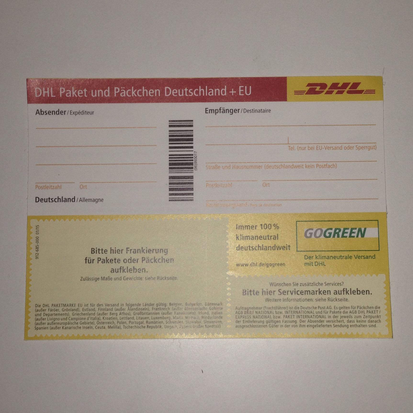 Der online Paketscheindrucker für Pakete und Päckchen einfach, schnell, kostenlos!. Haben Sie einen OnlineShop?. Am Besten solche Blanko DHL Paket und Päckchen Deutschland EU Aufkleber nehmen (wie die in jeder Filiale ausliegen) Unten links klebste dann die Briefmarken drauf Absender Empfänger alles ganz normal eintragen.