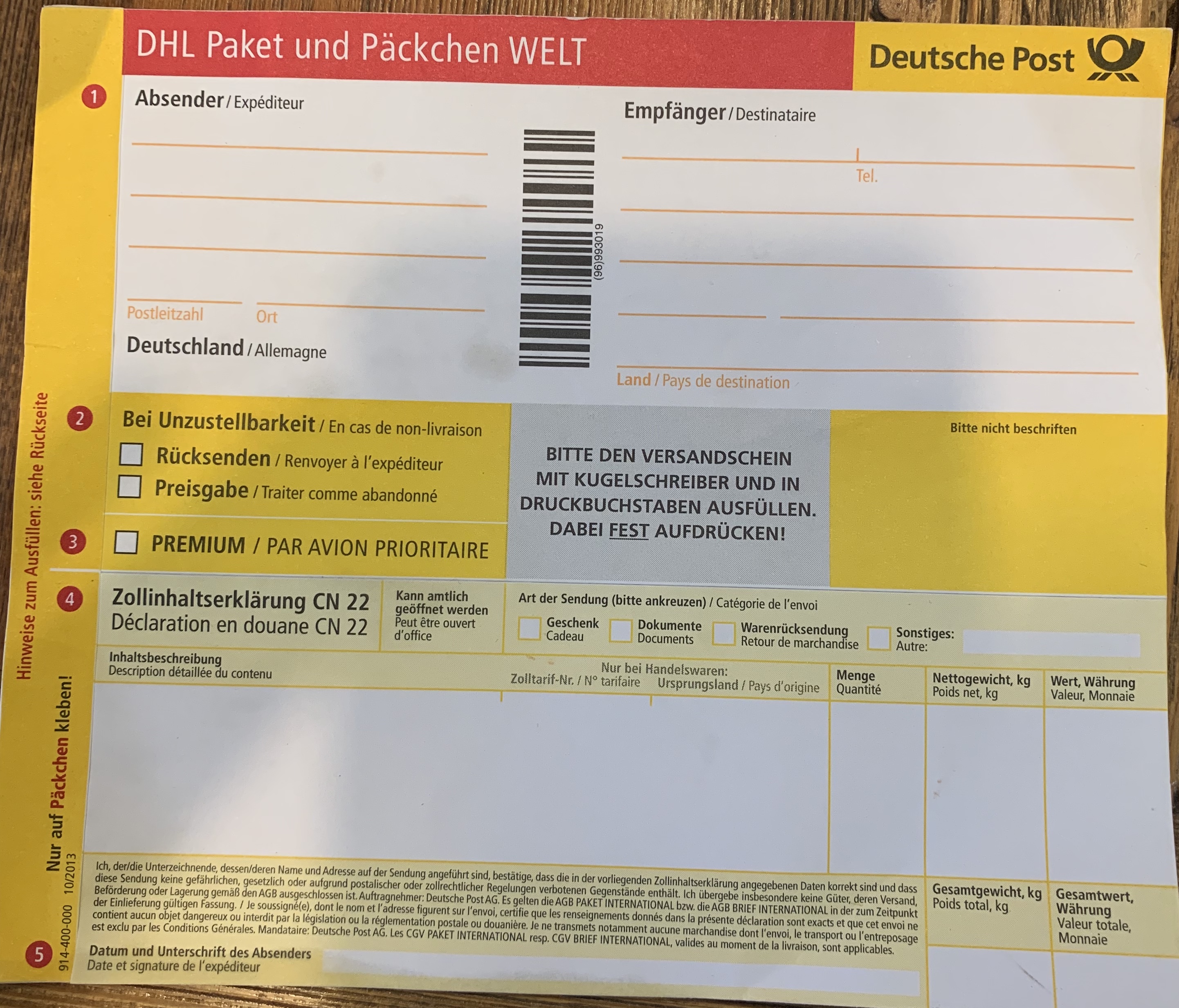 Oder Päckchen aufkleben Zulässige Maße und Gewichte siehe Rückseite (96) Absender/Expéditeur Empfänger/Destinataire Deutschland/Allemagne Postleitzahl Straße und Hausnummer (deutschlandweit kein Postfach) Postleitzahl Ort Ort Bestimmungsland/Pays de destination Tel (nur bei EUVersand oder Sperrgut) Wünschen Sie zusätzliche. Habe ein dhl päckchen mit falschem absender verschickt da ich meine adresse immer anonym behalte jtz hat der empfänger geschrieben das es falsch frankiert war und zurück geschickt wird, eine rechnung mit einer adresse war drin kanns sein das es ausgepackt und zu der adresse geschickt wird?. An den Absender zurückgesandt werden erneut an den Empfänger zugestellt werden Einverständniserklärung Mit meiner Unterschrift bestätige ich, dass alle Angaben wahrheitsgemäß sind, und erkläre mich damit einverstanden, dass die Sendung zum Zweck einer Schadensbegutachtung geöffnet werden darf Datum, Unterschrift Kunde.