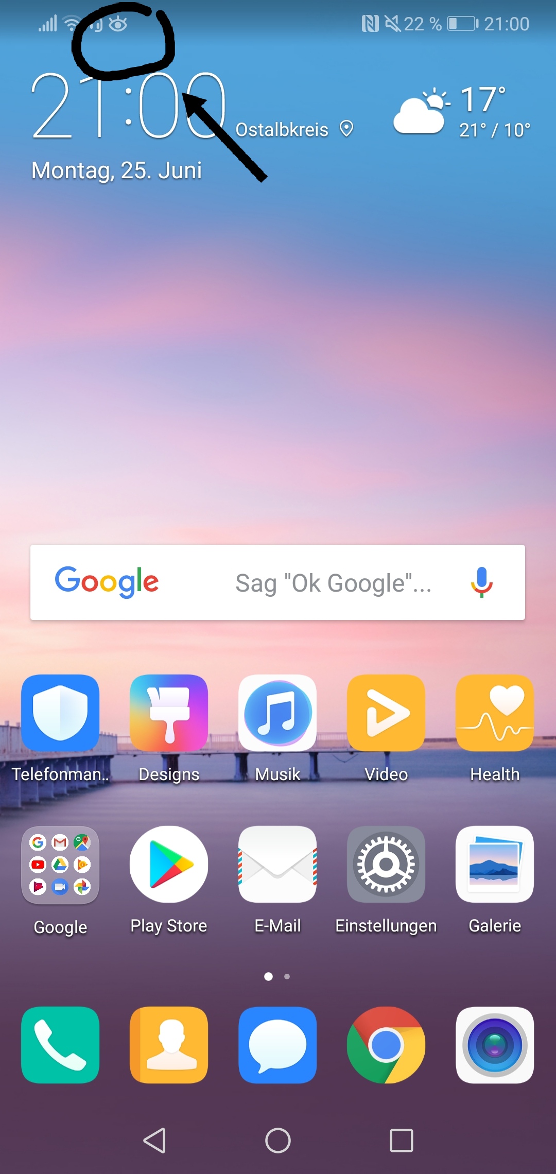 Huawei P Lite Auge Auf Statusleiste Handy Smartphone Creepy